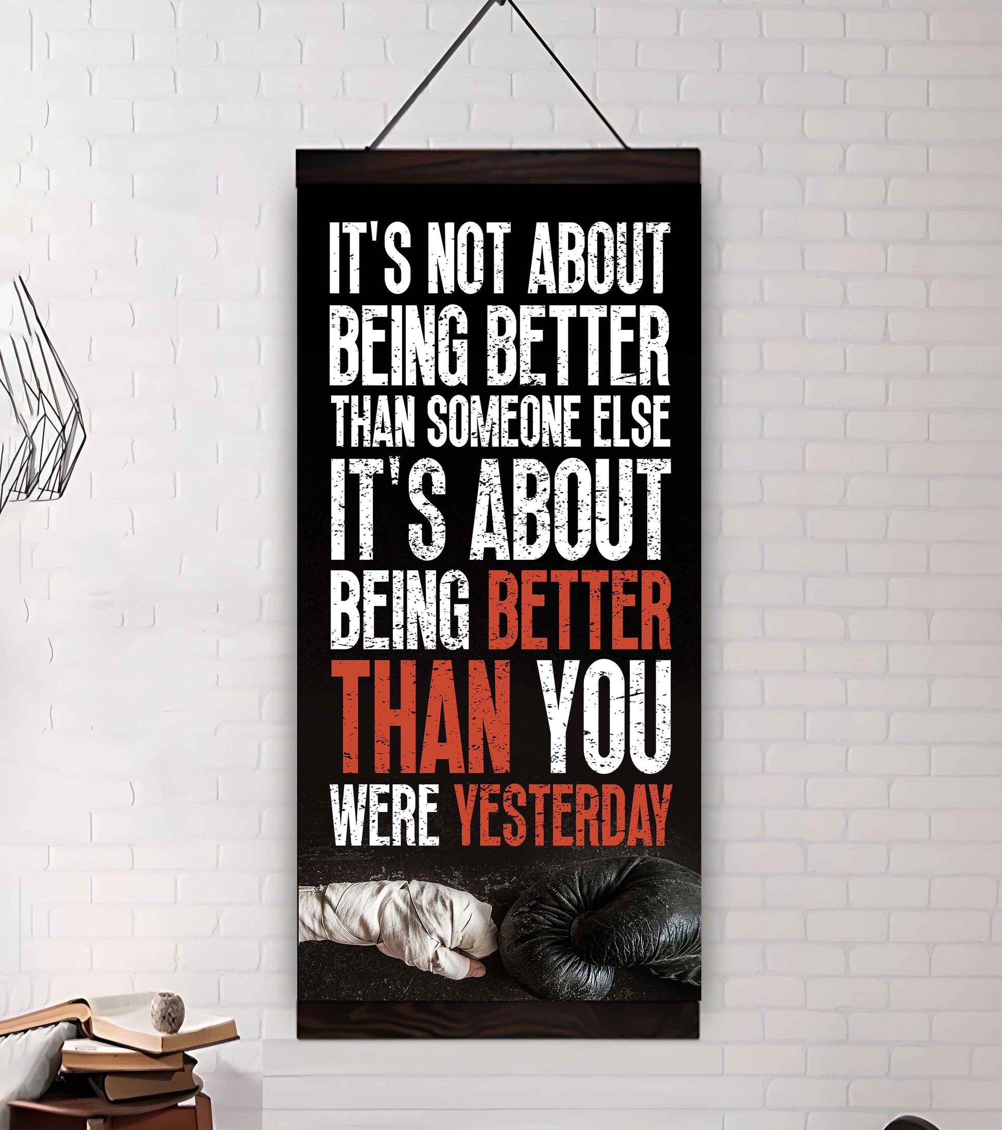NOTICE: This is a more casual and often more artistic style of canvas presentation. A hanging canvas typically consists of a canvas fabric sheet with two wooden bars attached at the top and bottom. The top bar includes a hanging mechanism, usually a string or a cord, for easy display. This style allows the canvas to hang freely against the wall, giving it a slightly informal, bohemian feel. The canvas in this case can be easily rolled for storage or transport.