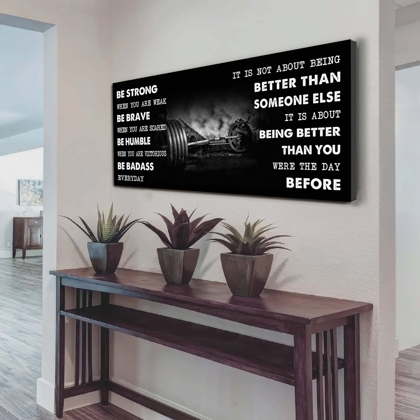 NOTICE: This is a more casual and often more artistic style of canvas presentation. A hanging canvas typically consists of a canvas fabric sheet with two wooden bars attached at the top and bottom. The top bar includes a hanging mechanism, usually a string or a cord, for easy display. This style allows the canvas to hang freely against the wall, giving it a slightly informal, bohemian feel. The canvas in this case can be easily rolled for storage or transport.