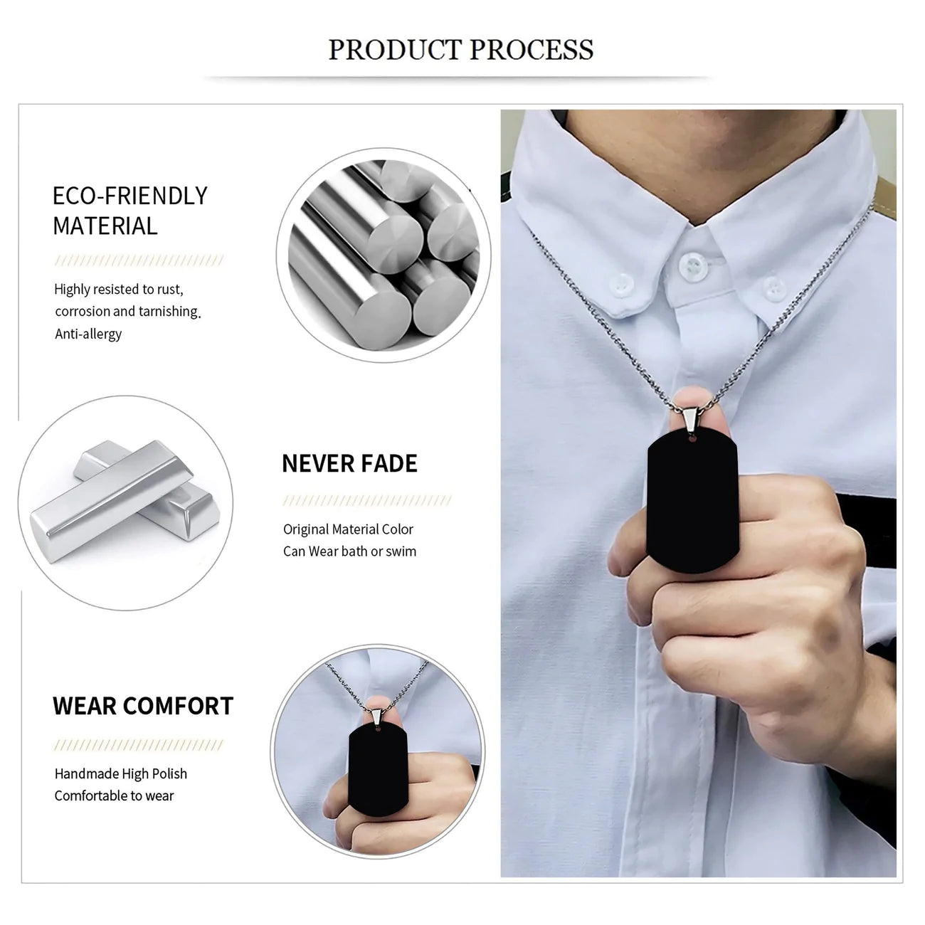 Product Weight: 16.4g; Dog tag: 48mm x 28mm; Luxury Military Necklace: 24″ (61cm) with an upgraded clasp.